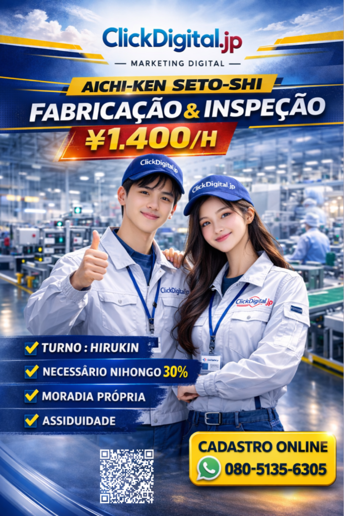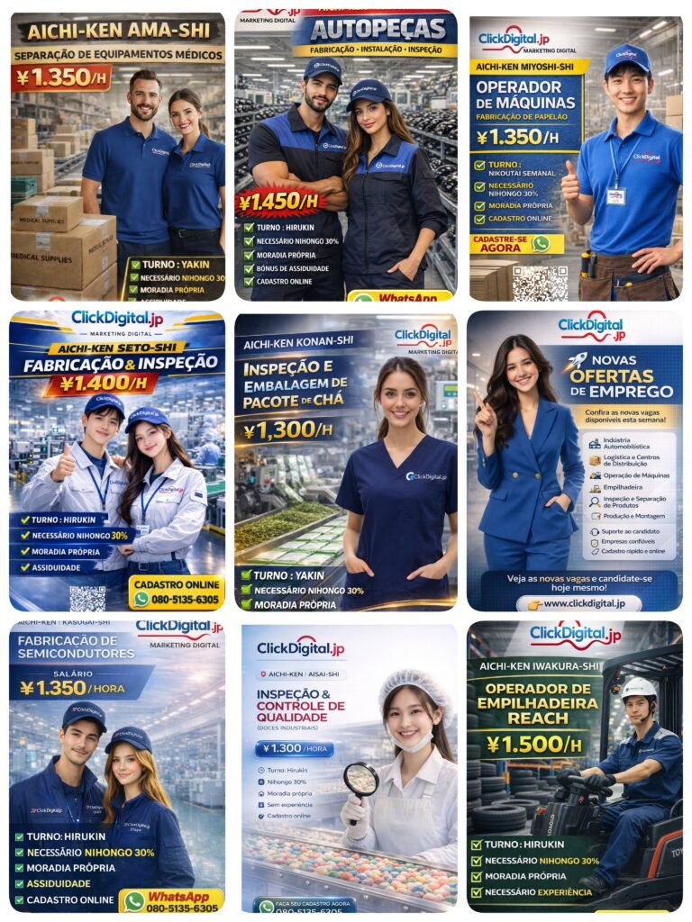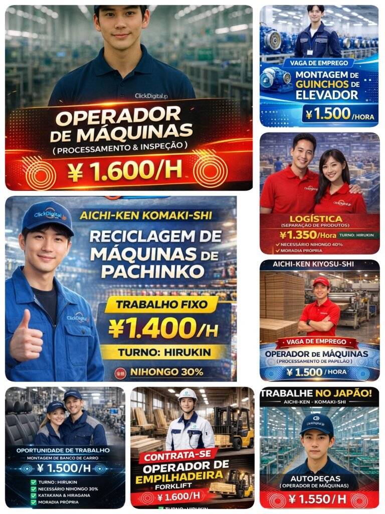 ”A ClickDigital.jp é uma empresa especializada em recrutamento e recursos humanos no Japão, conectando talentos a oportunidades reais em fábricas, centros logísticos e indústrias. Trabalhamos com transparência, agilidade e compromisso, oferecendo suporte completo aos candidatos e soluções eficientes às empresas parceiras.”