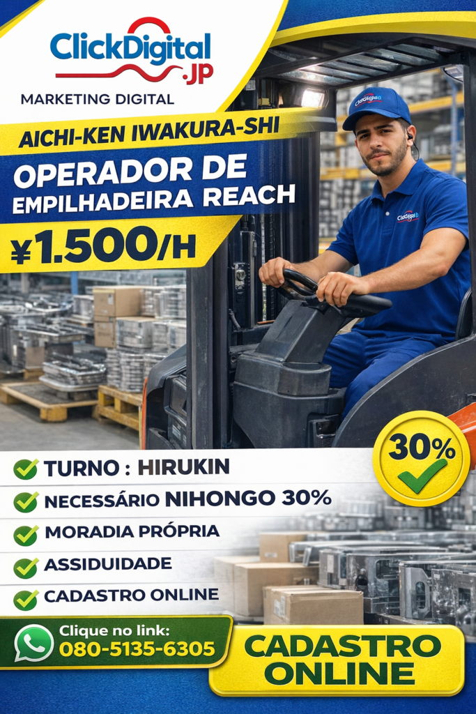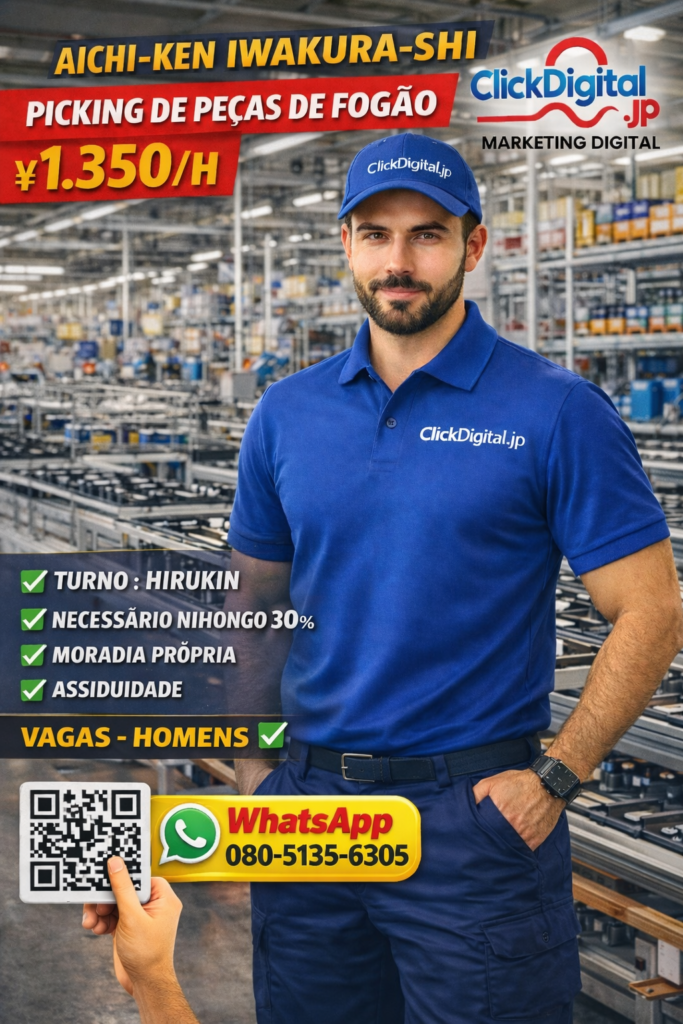 ”A ClickDigital.jp é uma empresa especializada em recrutamento e recursos humanos no Japão, conectando talentos a oportunidades reais em fábricas, centros logísticos e indústrias. Trabalhamos com transparência, agilidade e compromisso, oferecendo suporte completo aos candidatos e soluções eficientes às empresas parceiras.”