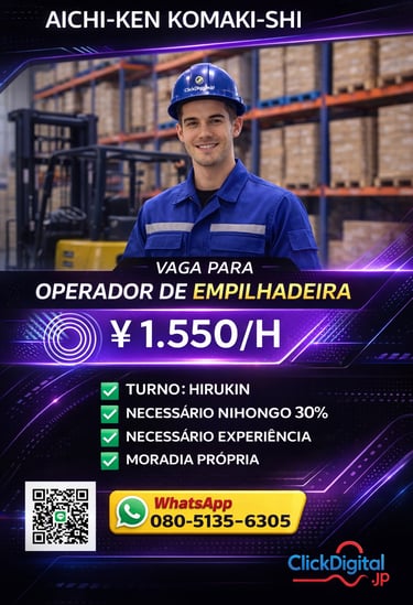 • 📍Local : Komaki-shi, Aichi-Ken | Cód. da Vaga: KA-0052 .