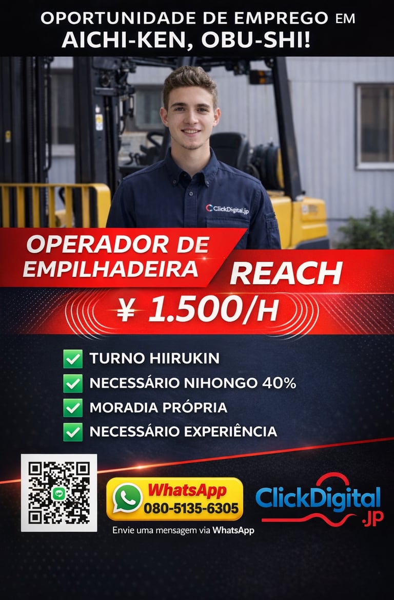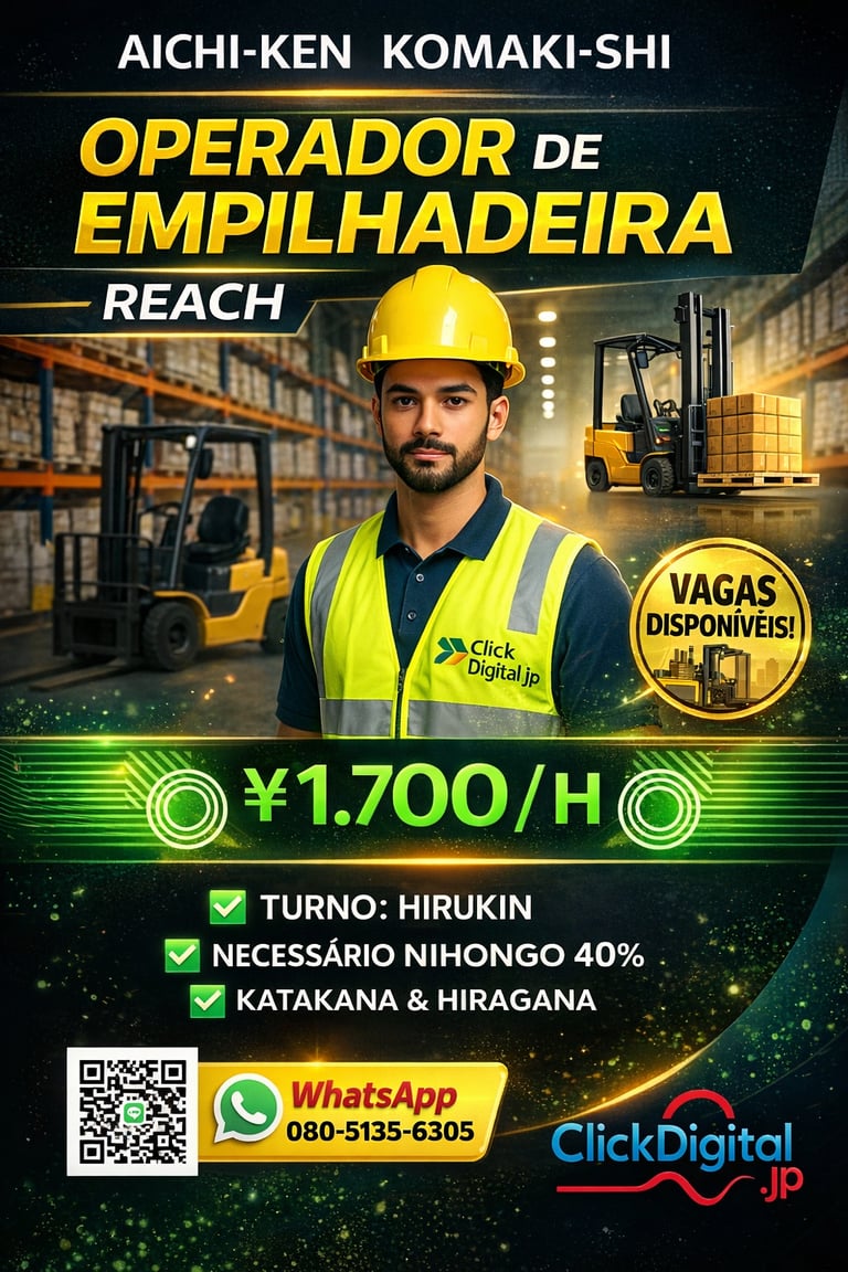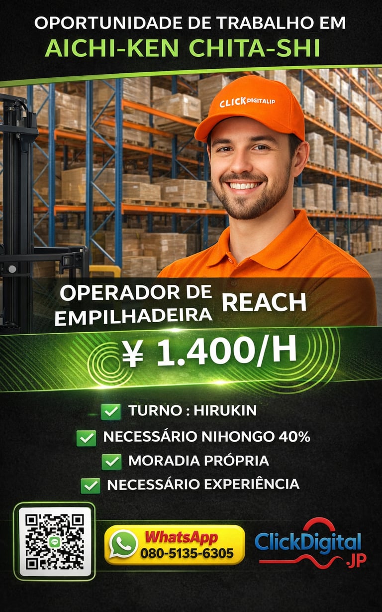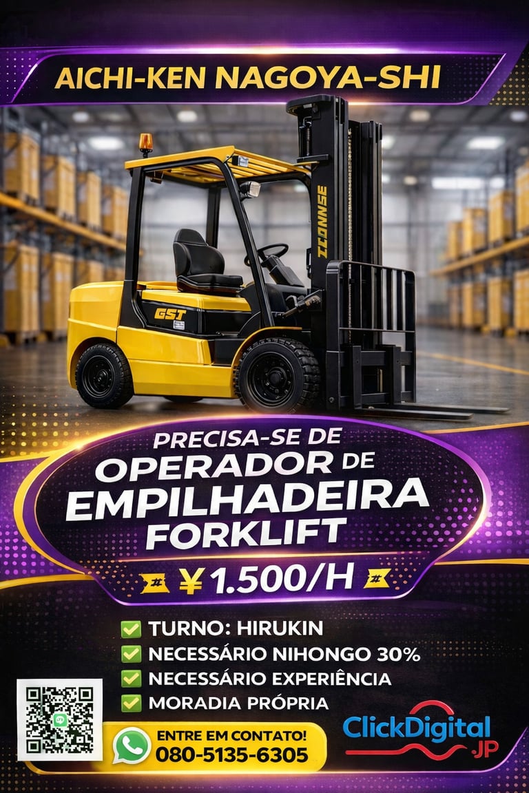 • 📍Local : Nagoya-shi, Aichi-Ken | Cód. da Vaga: KA -0002 .