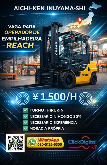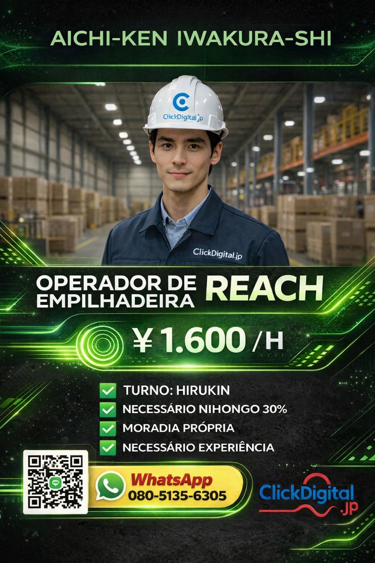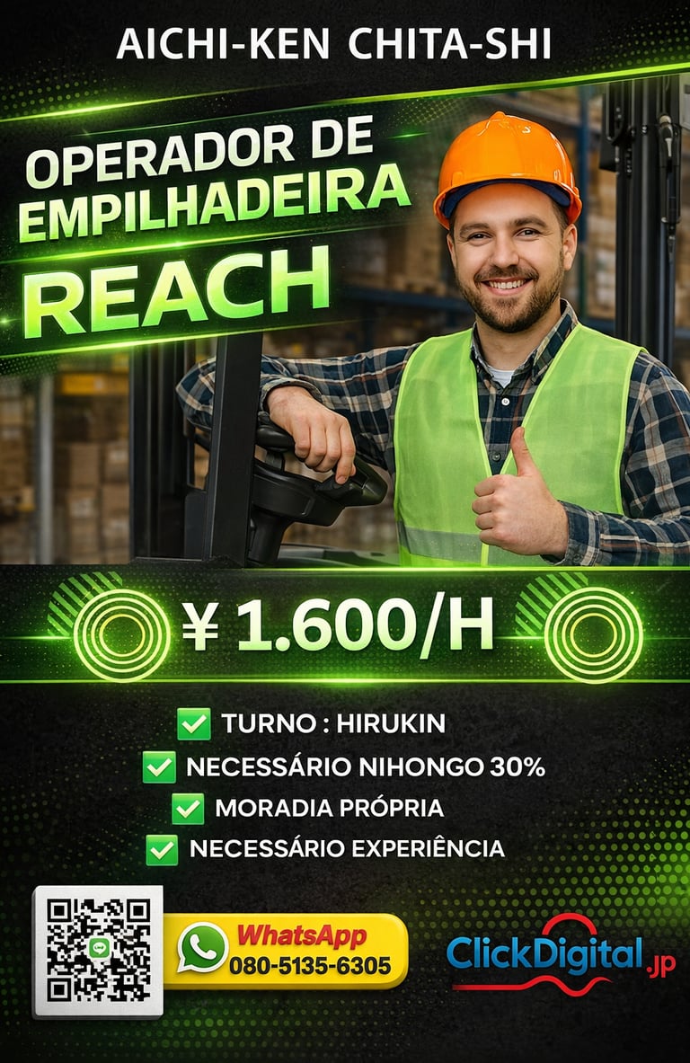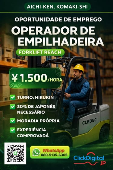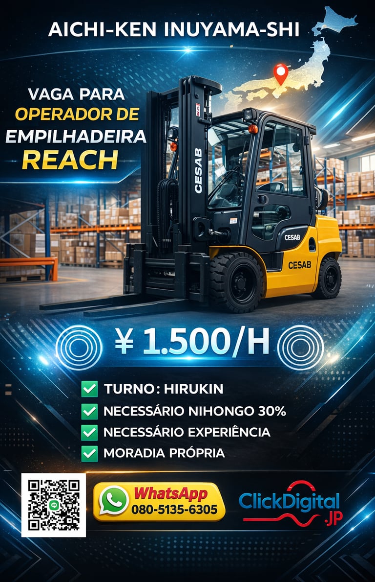 • 📍Local : Nagoya-shi, Aichi-Ken | Cód. da Vaga: KA -0002 .