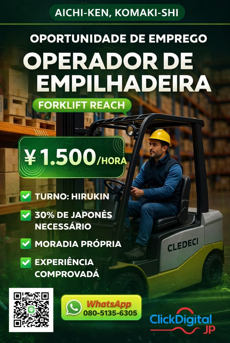 • 📍Local : Komaki-shi, Aichi-Ken | Cód. da Vaga: KA -567 .
