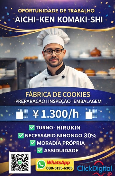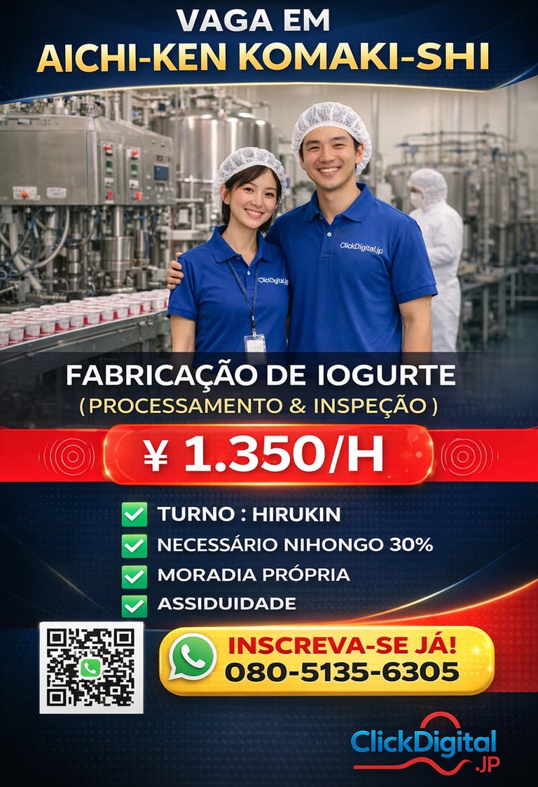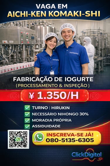 • 📍Local: Komaki-shi, Aichi-Ken | Cód. da Vaga: KA -0001 .