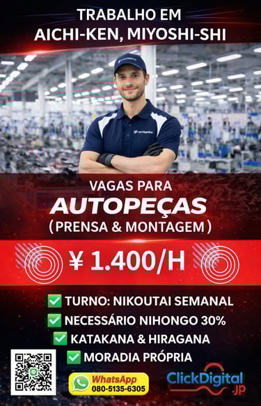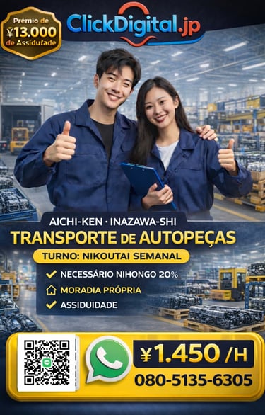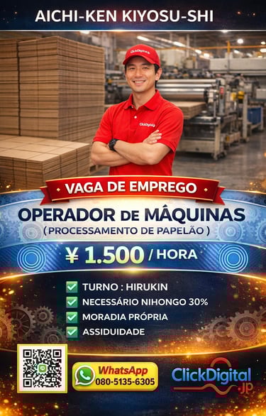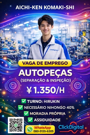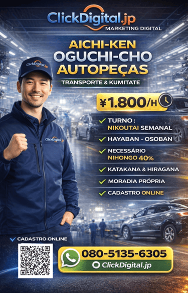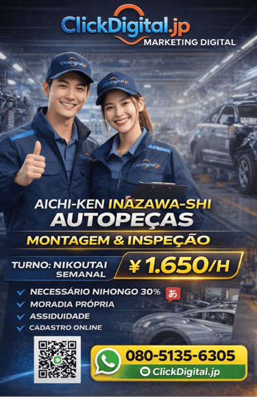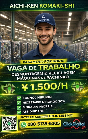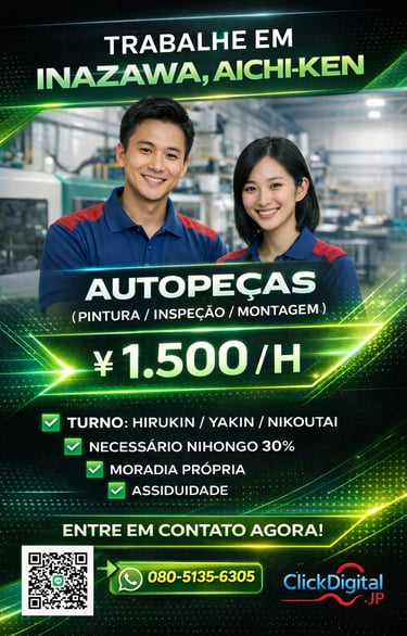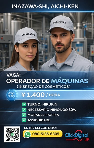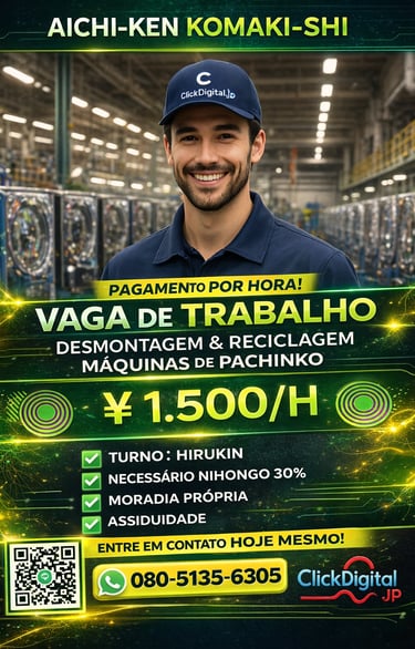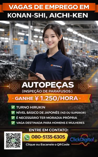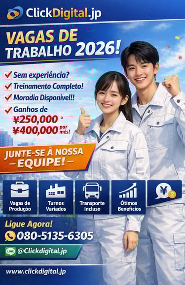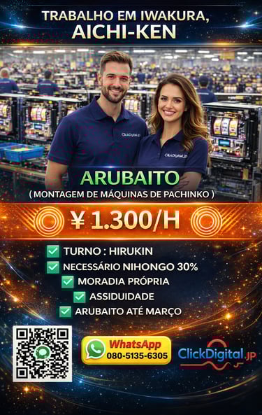 Entre em contato conosco para oportunidades de trabalho no Japão com ótimos salários e assistência total. Estamos aqui para ajudar você!