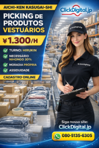 Logística . Picking em Centro Logístico de Roupas e Vestuários . Kasugai-shi, Aichi-Ken . Cód. da Vaga : SO-240.