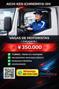 📍Local: Ichinimiya-shi, Aichi-Ken | Cód. da Vaga : KA-0268 .
